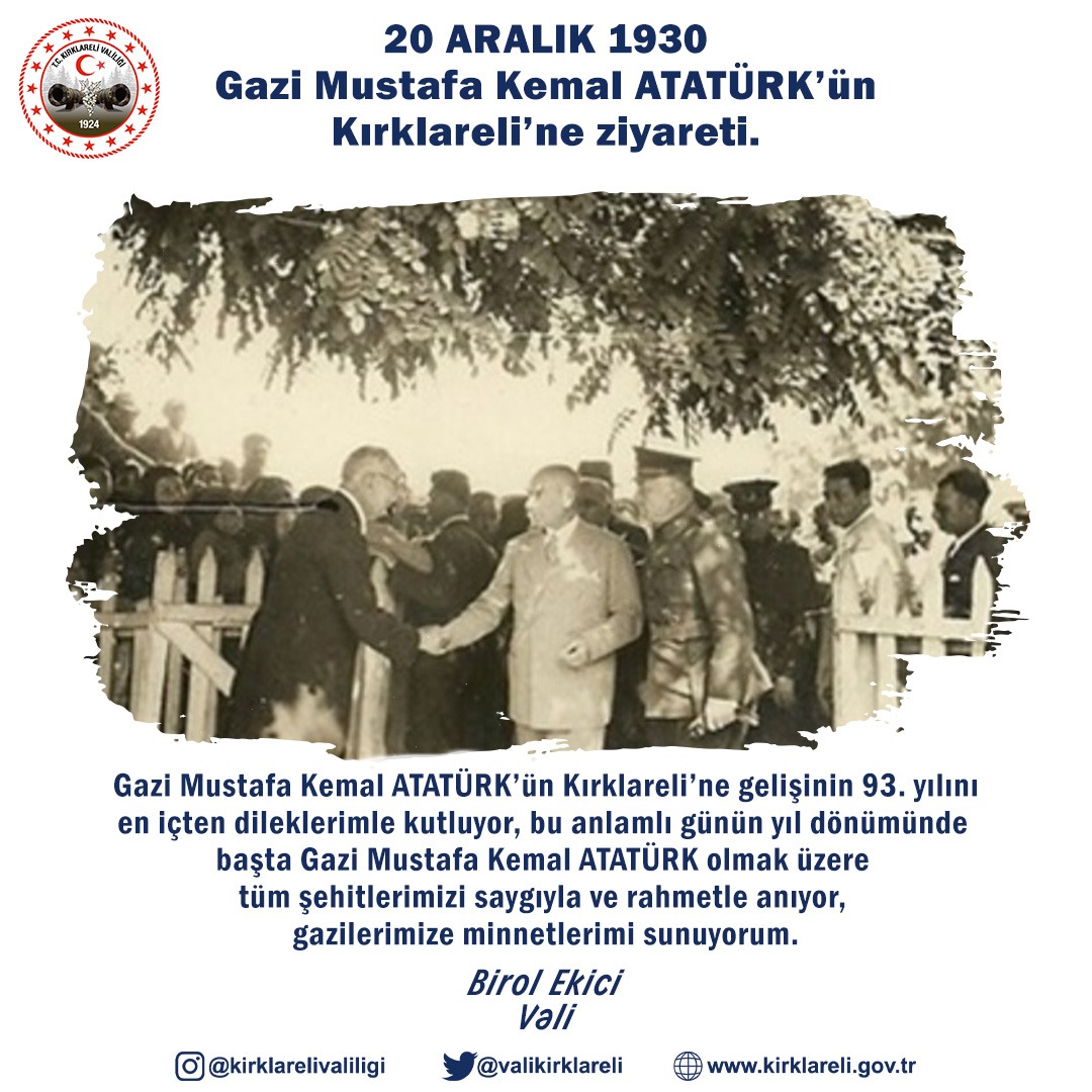 Kurtuluş Savaşı'nın destansı sürecinin ardından ülkenin her köşesini ziyaret ederek vatandaşlarına zaman ayıran, büyük lider Gazi Mustafa Kemal Atatürk'ün, Kırklareli'ne gelişinin üzerinden 93 yıl geçti. Vali Birol Ekici, bu önemli tarihi olayı anma ve anlamlandırma hususunda bir mesaj yayınladı.Vali Ekici’nin ifadelerine göre, 20 Aralık 1930'da ilimize gelen Gazi Mustafa Kemal Atatürk, coşkulu bir kalabalık tarafından karşılandı. Atatürk’ün ziyareti, hemşerilerde büyük bir mutluluk ve onur yaşattı.Vali Ekici, Gazi Mustafa Kemal Atatürk'ün o günlerde Kırklarelililerle yapmış olduğu sohbetlerde Cumhuriyet'in değerleri ve millet olmanın önemine vurgu yaptığını belirtti. Atatürk'ün bu ziyareti, ilde derin bir sevgi ve ilgiyle karşılanmış ve vatandaşlar tarafından büyük bir saygıyla karşılanmıştı.Vali Ekici, o dönemde üstesinden insanüstü bir azimle gelen vatandaşların, bugün de Gazi Mustafa Kemal Atatürk'ün vizyonu doğrultusunda ülkeyi muasır medeniyetler seviyesine taşıma gayretinin devam ettiğini vurguladı. "Millete efendilik yoktur, hizmet vardır" ilkesiyle ülkeye ve millete hizmet etme çabasının gece gündüz devam ettiğine dikkat çekti.Vali Birol Ekici, anlamlı günün yıl dönümünde Gazi Mustafa Kemal Atatürk ve silah arkadaşlarını rahmetle anarken, gazilere minnet duygularını iletti ve Gazi Mustafa Kemal Atatürk’ün Kırklareli’ne gelişinin 93. yılını en içten dilekleriyle kutladı.Vali Ekici’nin mesajı şu şekilde oldu; “Kurtuluş Savaşında yazdığımız şanlı destanın ardından, memleketin vaziyetini görmek üzere bulduğu her fırsatta yurdun her köşesine ziyaretlerde bulunarak vatandaşlarına zaman ayıran, büyük komutan ve devlet adamı Gazi Mustafa Kemal Atatürk, 93 yıl önce bugün 20 Aralık 1930‘da ilimize gelmiş ve coşkulu bir kalabalık tarafından karşılanmıştır. Onu karşılamak ve yakından görmek isteyen hemşerilerimiz onun şehre gelişi ile büyük bir mutluluk ve onur yaşamışlardır.İlimizi ziyaret ederek kent halkıyla bir araya gelen Gazi Mustafa Kemal Atatürk, vatandaşlarla Cumhuriyet'in fazilet ve kazanımları ve millet olmanın bilinç ve önemi hakkında sohbetler etmiş, Kırklarelilileri aydınlatmış ve şereflendirmiştir. Kırklarelililer; Gazi Mustafa Kemal Atatürk'ü büyük bir sevgi ve ilgiyle karşılamış ve bağırlarına basmışlardır.O günlerde her türlü zorluğu insan üstü bir azimle ve inançla aşarak, büyük zaferler ile vatan kıldığımız ülkemizi ve Cumhuriyetimizi, bugünde Gazi Mustafa Kemal Atatürk’ün hedef gösterdiği muasır medeniyetler üzerine çıkarmak ve “Millete efendilik yoktur, hizmet vardır” düsturuyla ülkemize ve aziz milletimize en iyi şekilde hizmet etmek için gece, gündüz hiç durmadan, yorulmadan çalışmaya devam edeceğiz.Bu anlamlı günün yıl dönümünde Gazi Mustafa Kemal Atatürk ve silah arkadaşlarını saygıyla ve rahmetle anıyor, gazilerimize minnetlerimizi sunuyor ve Gazi Mustafa Kemal Atatürk’ün Kırklareli ’ne gelişinin 93. yılını en içten dileklerimle kutluyorum.”HABER MERKEZİ