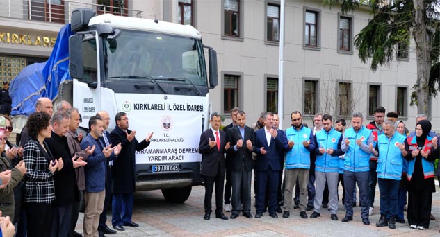 Kırklareli Valiliği, depremden etkilenen 11 il için Ramazan Yardım Kampanyası başlattı. Kampanya kapsamında iftar ve sahur ihtiyaçlarına yönelik hayırsever katkılarıyla gıda kolileri oluşturuldu. Oluşturulan gıda kolilerinin ikinci sevkiyatı Gaziantep Nurdağı'na ulaştırılmak üzere Valilik önünde düzenlenen törenle dualarla uğurlandı. Törene Kırklareli Valisi Birol Ekici ve hayırseverlerin yanı sıra Vali Yardımcısı Elif Canan Tuncer, Kırklareli İl Özel İdare Genel Sekreteri Bilal Kuşoğlu, Kırklareli İl Müftüsü Yusuf Eviş, STK'lar ve kurum kuruluş yetkilileri katıldı.Törende bir konuşma yapan Vali Birol Ekici, Valilik öncülüğünde başlatılan Ramazan Yardım Kampanyası ile ramazan ayı boyunca 11 ilde kuru gıda ve bakliyat desteği sağlayacaklarını belirtti. Geçtiğimiz hafta Hatay'a yapılan ilk sevkiyatı hatırlatan Vali Ekici, ikinci sevkiyatın Gaziantep Nurdağı'na gerçekleştirildiğini açıkladı. Vali Ekici, Kırklareli'den gönderilen yardımların bölgede yaşam koşulları normale dönene kadar ve yaralar sarılana kadar süreceğini vurguladı.Törene Vali Birol Ekici ve hayırseverlerin yanı sıra Vali Yardımcısı Elif Canan Tuncer, İl Özel İdaresi Genel Sekreteri Bilal Kuşoğlu, İl Müftüsü Yusuf Eviş, STK'lar ve kurum kuruluş yetkilileri de katıldı.HABER: Umut AL