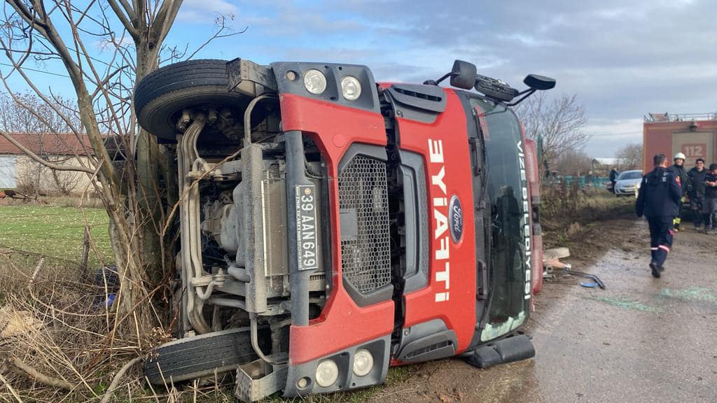 Vize Belediyesi İtfaiye ekipleri Akıncılar Köyünde meydana gelen kazaya yardım için giderken yolun kaygan olmasından dolayı kaza yaptılar